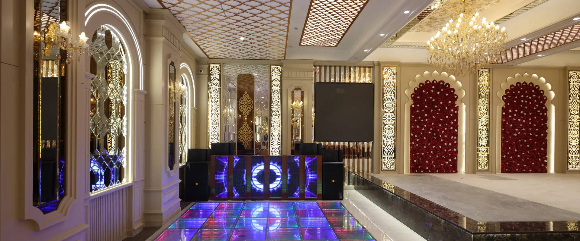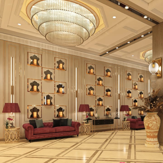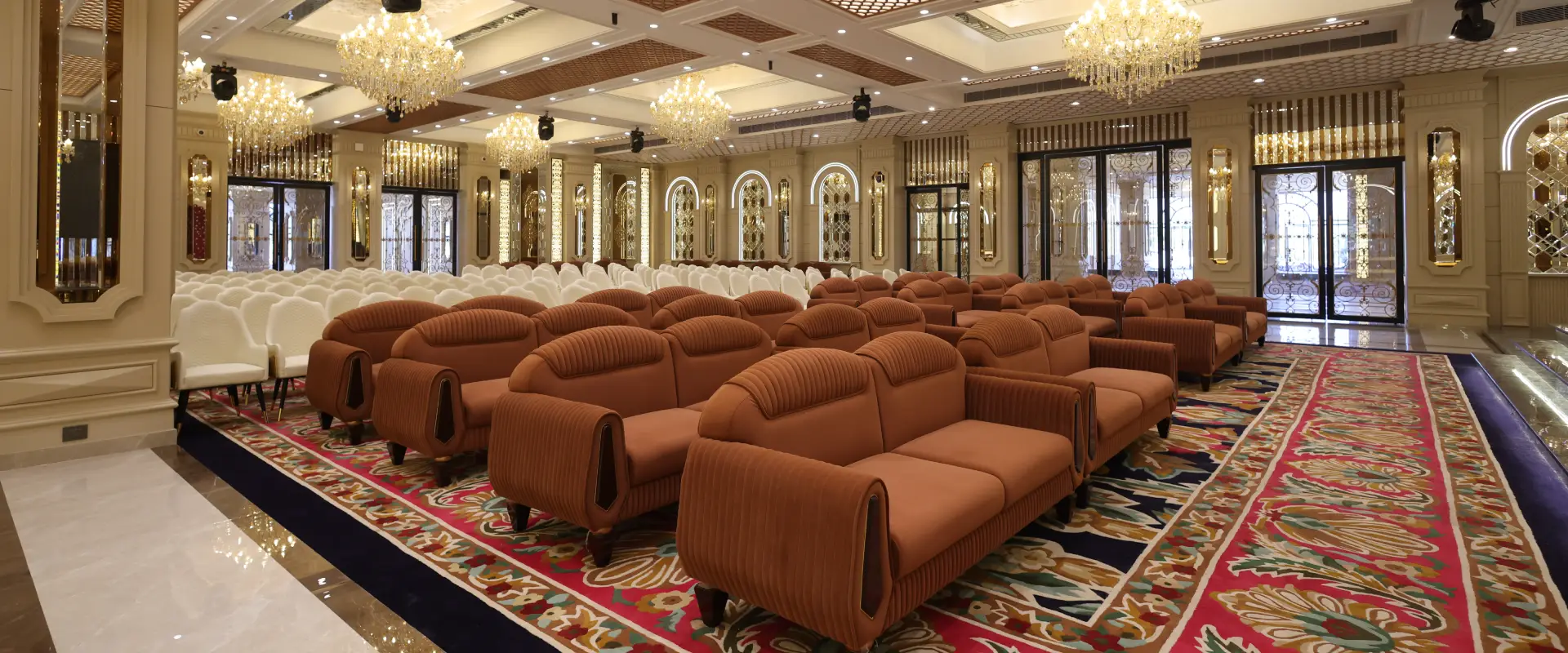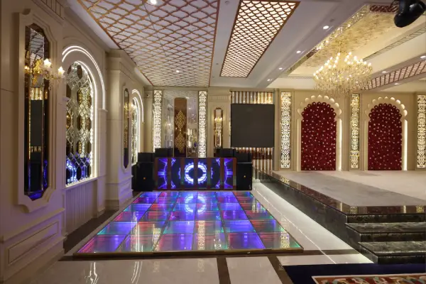 For sophisticated indoor celebrations, our pillar- less grand ballroom Pushkar events are renowned for. With state-of-the-art audio visual systems, elegant chandeliers, and customizable decor, it provides a majestic backdrop for weddings, galas .